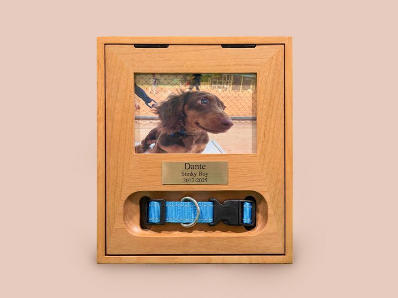 Keep the friend that never left your side close by. From personalized urns to customizable jewelry, to artwork with your pet’s personal touch, our selection of keepsakes are a beautiful reminder of your friendship.